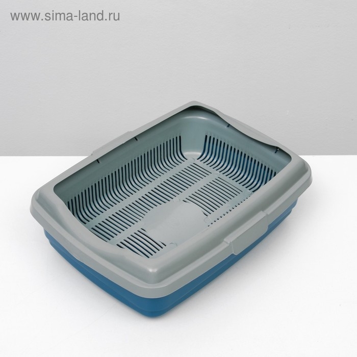 Лоток большой с сеткой и бортиком Atlantis "Стандарт", 43 х 33 х 12,5 см, синий,