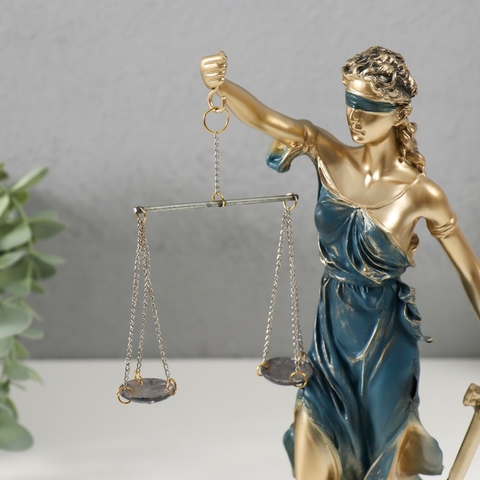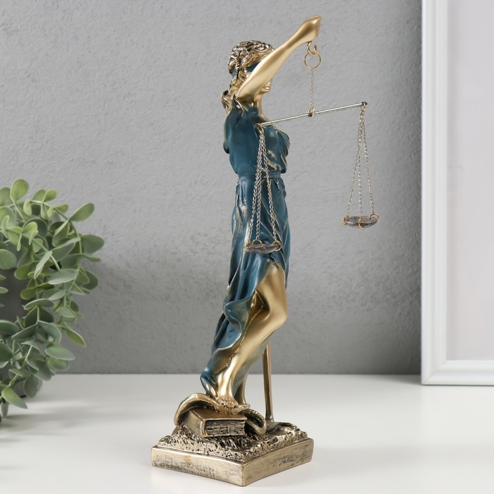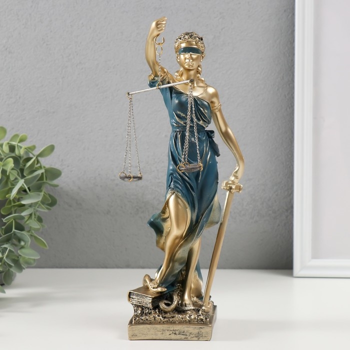 Сувенир полистоун "Богиня Фемида" золотистый с синим 28х7х8 см