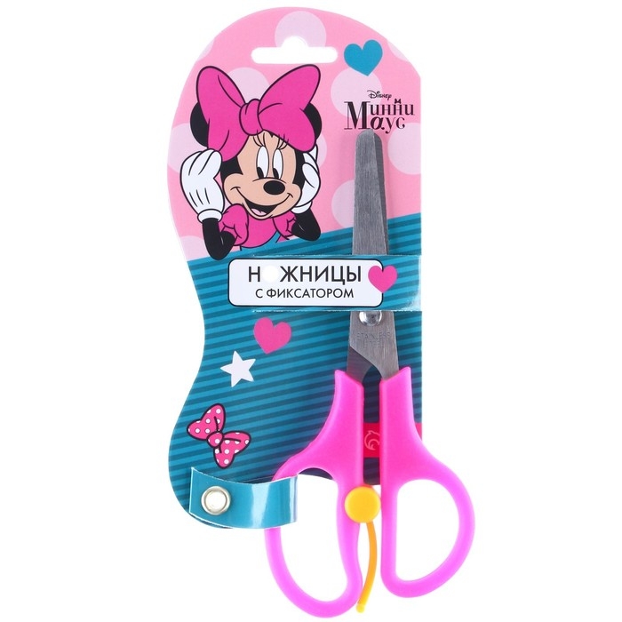 Ножницы детские 13 см, безопасные, пластиковые ручки с фиксатором, Минни Маус, МИКС