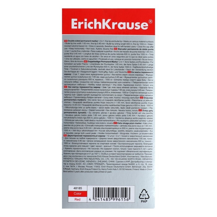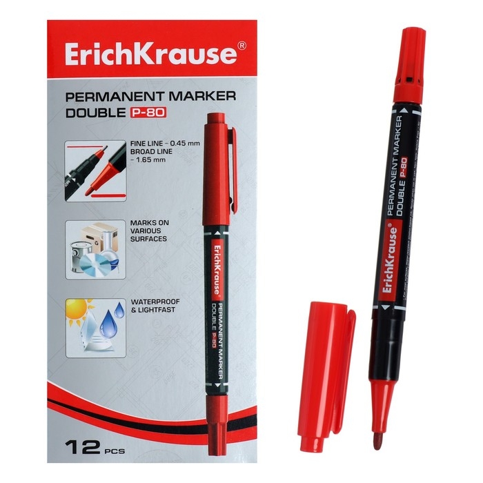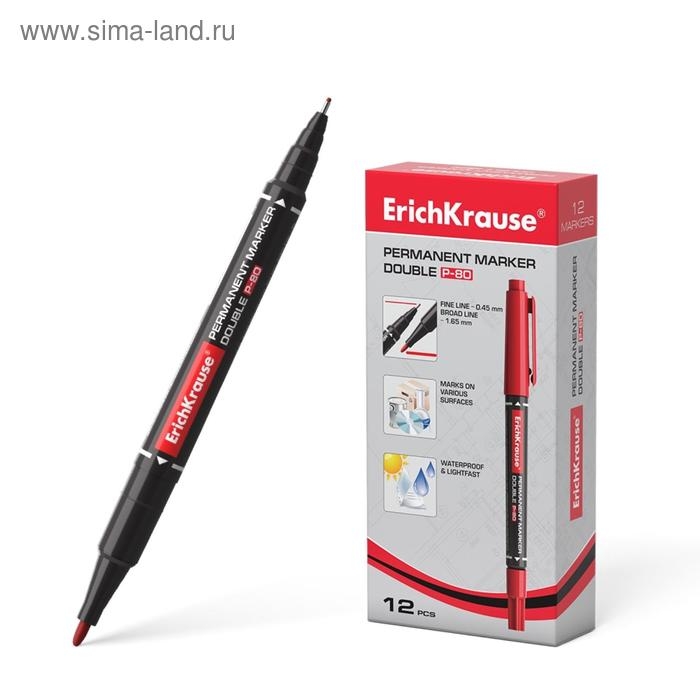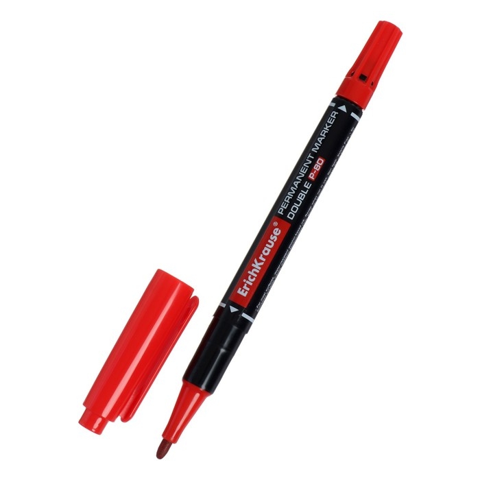 Маркер перманентный ErichKrause Double P-80, 0.45-1.65 мм, двусторонний, красный