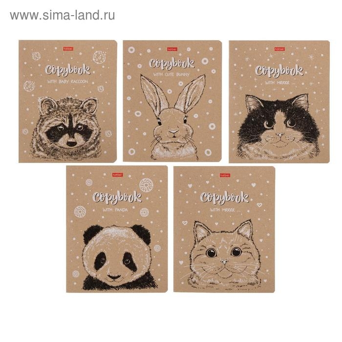 Тетрадь 48 листов, в клетку, "С милыми зверьками", обложка крафт-картон, блок офсет, МИКС