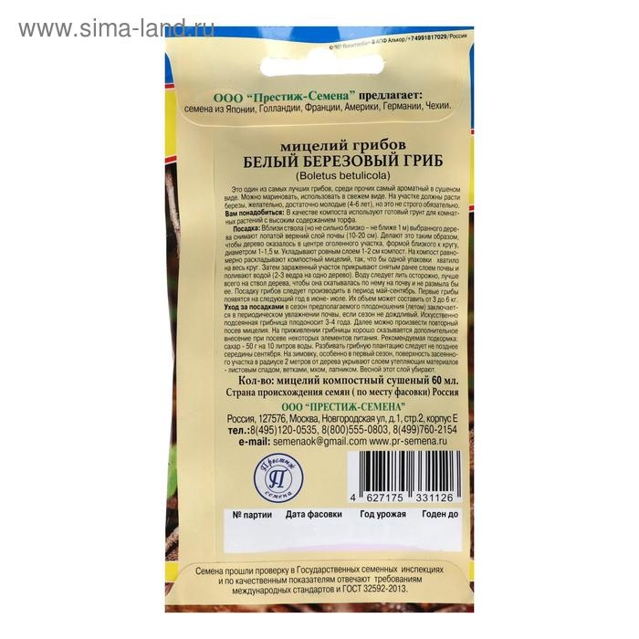 Семена Мицелий "Белый гриб", дубовый на зерновом субстрате, 15 мл