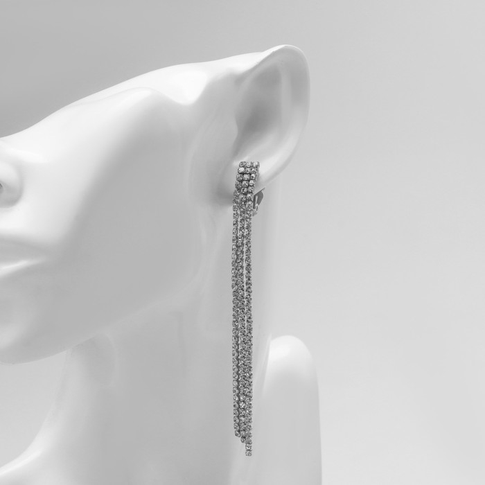 Клипсы «Грейс» диагональ бусин, цвет белый в чернёном серебре