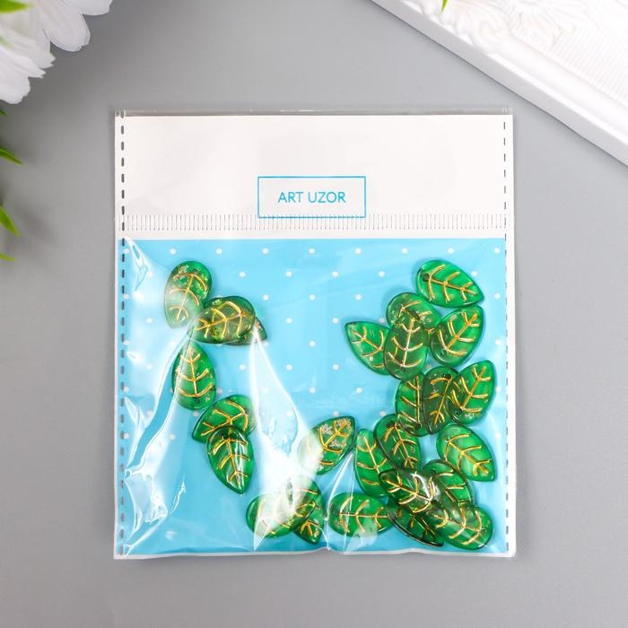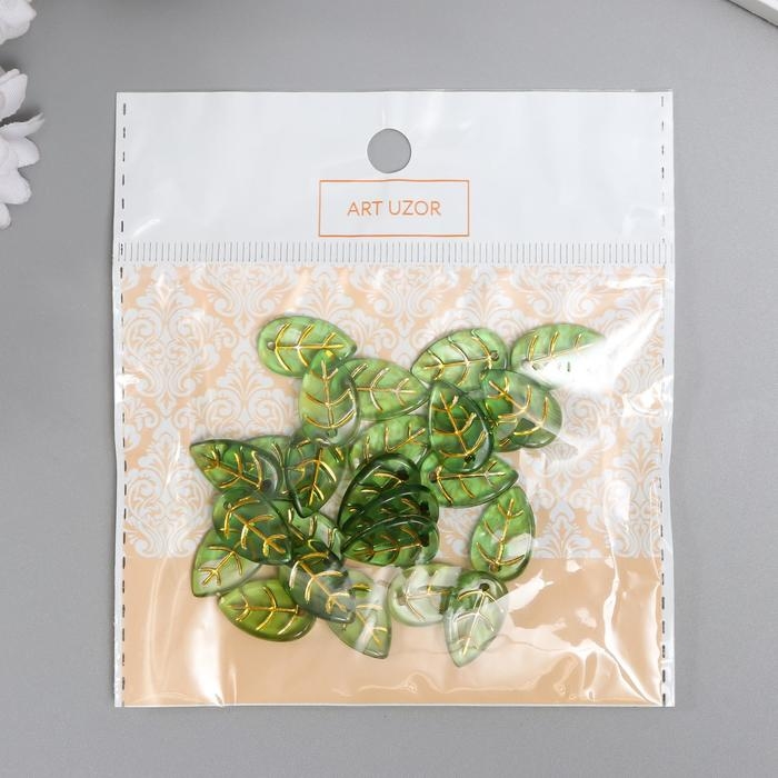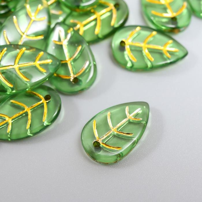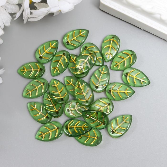 Бусины для творчества пластик "Зелёный лист с золотыми прожилками" набор 25 шт 1,7х1,1х0,3см