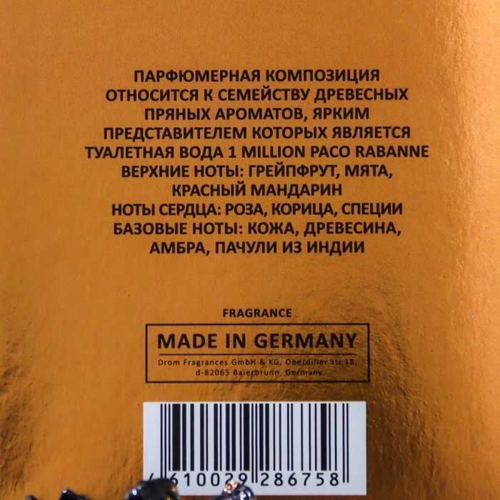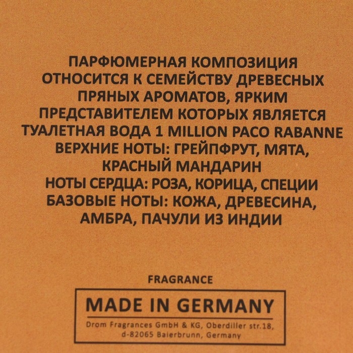 Аромат создан по мотивам 1 Million (P.Rabanne).