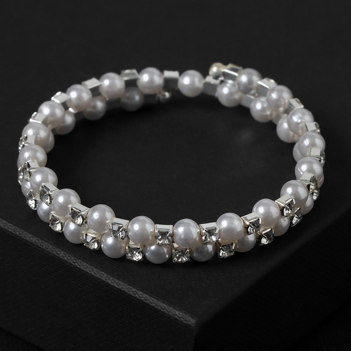 Браслет-пружинка «Жемчужный ряд» 3 ряда, d=6,5 цвет белый в серебре