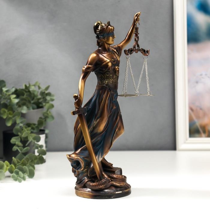 Сувенир полистоун "Фемида - богиня правосудия" бронзово-синяя 31,5х11х11 см