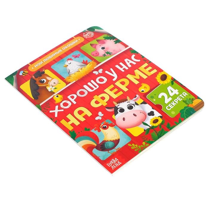 Книга картонная с окошками «Хорошо у нас на ферме», 10 стр., 24 окошка