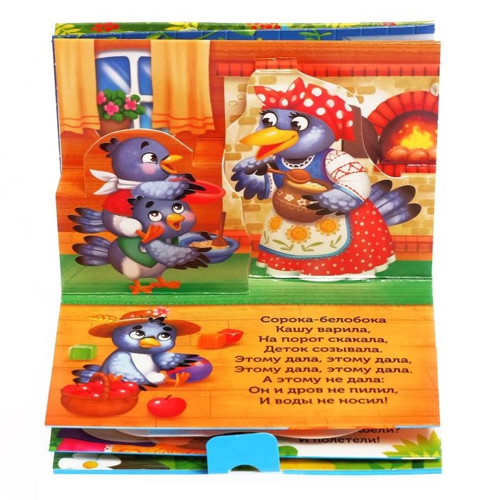Книга-панорамка сделана из картона, а внутри на каждом развороте есть 3D-иллюстрации, которые оживят рассказы. В книге 5 разворотов.