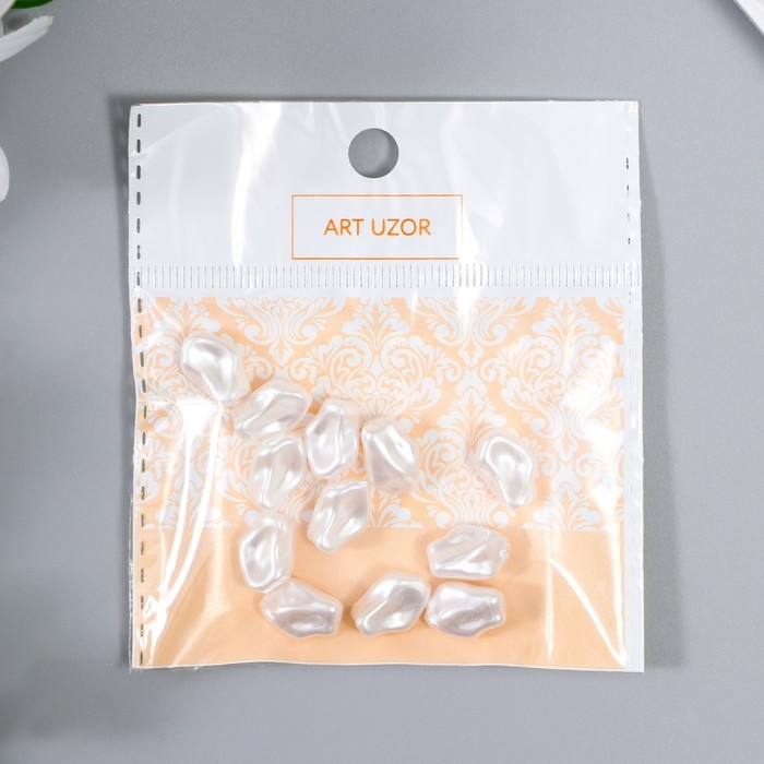 Бусины для творчества пластик "Жемчуг в форме камешка" набор 12 шт 1,2х0,6х0,7 см