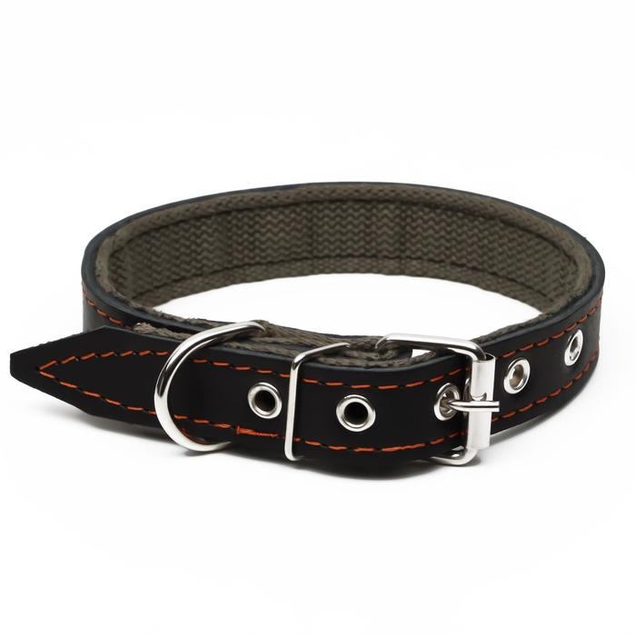 Ошейник комбинированный кожа/брезент, 53 х 2.5 см, ОШ 35-45 см, чёрный