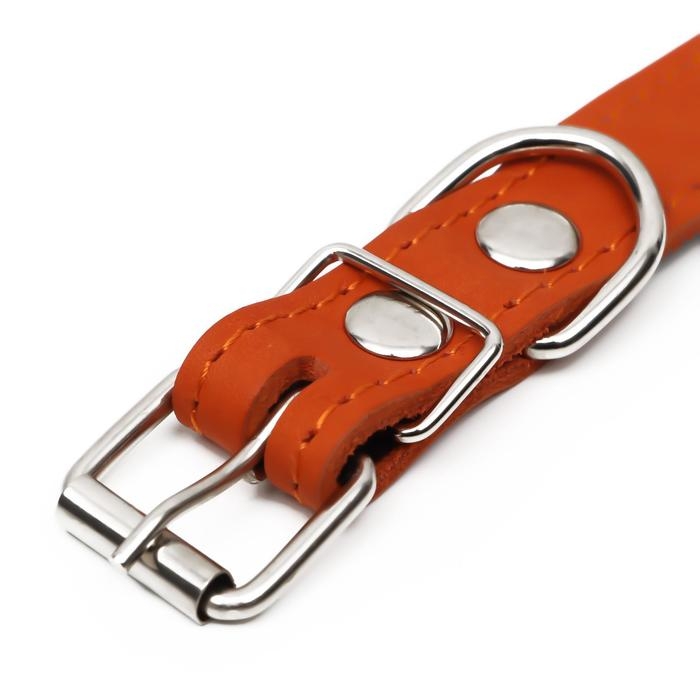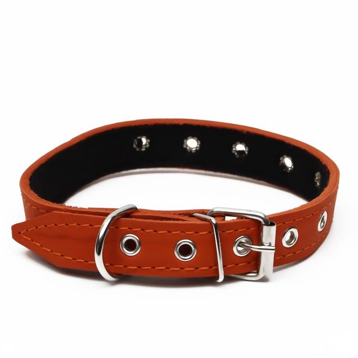 Ошейник кожаный на синтепоне, безразмерный, 54 х 2,5 см, ОШ 19-47 см, оранжевый