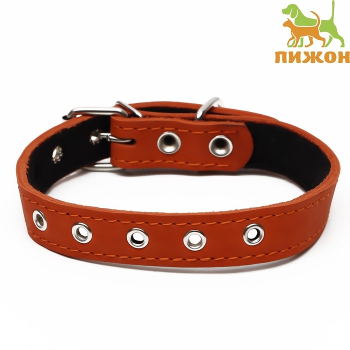 Ошейник кожаный на синтепоне, 56 х 2.5 см, ОШ 35-45 см, коричневый