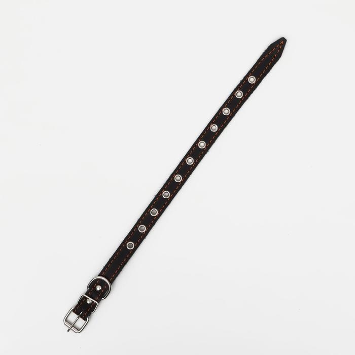 Ошейник кожаный с тиснением на синтепоне, 46 х 2 см, ОШ 25-35 см, коричневый