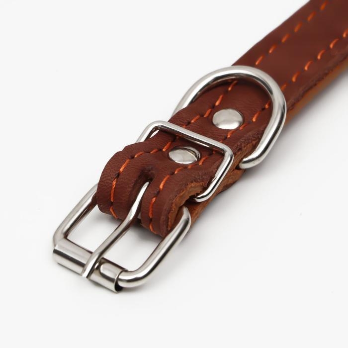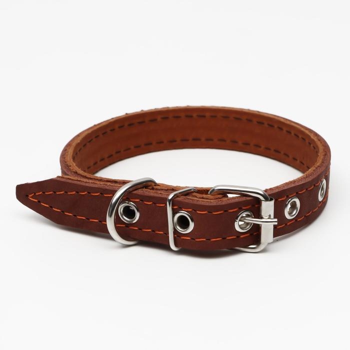 Ошейник кожаный двухслойный, 46 х 2 см, ОШ 25-35 см, коричневый