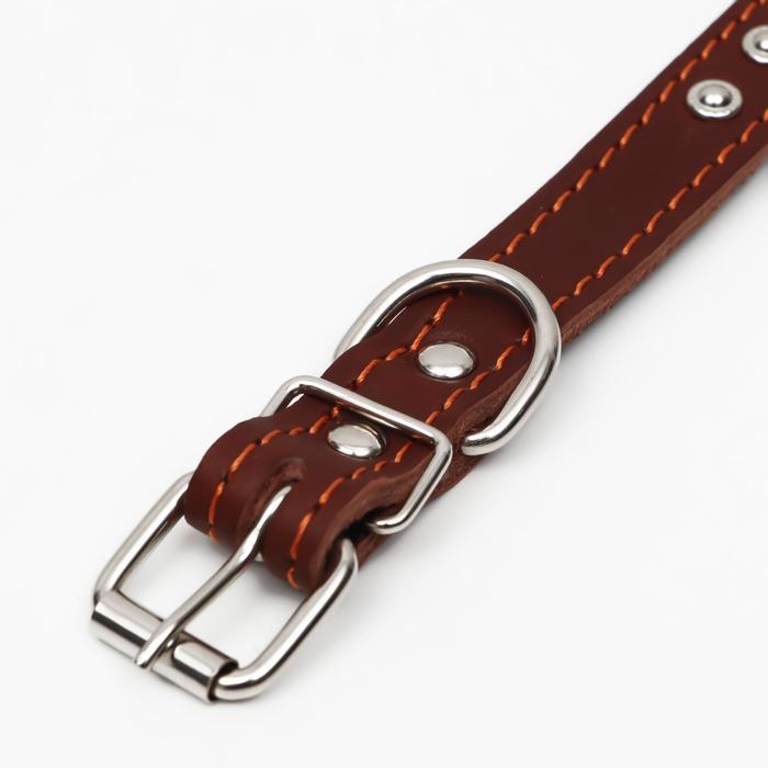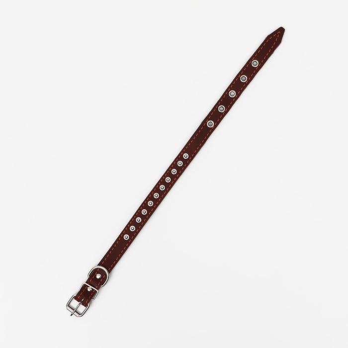 Ошейник кожаный на синтепоне украшенный, 45 х 2 см, ОШ 25-35 см, коричневый