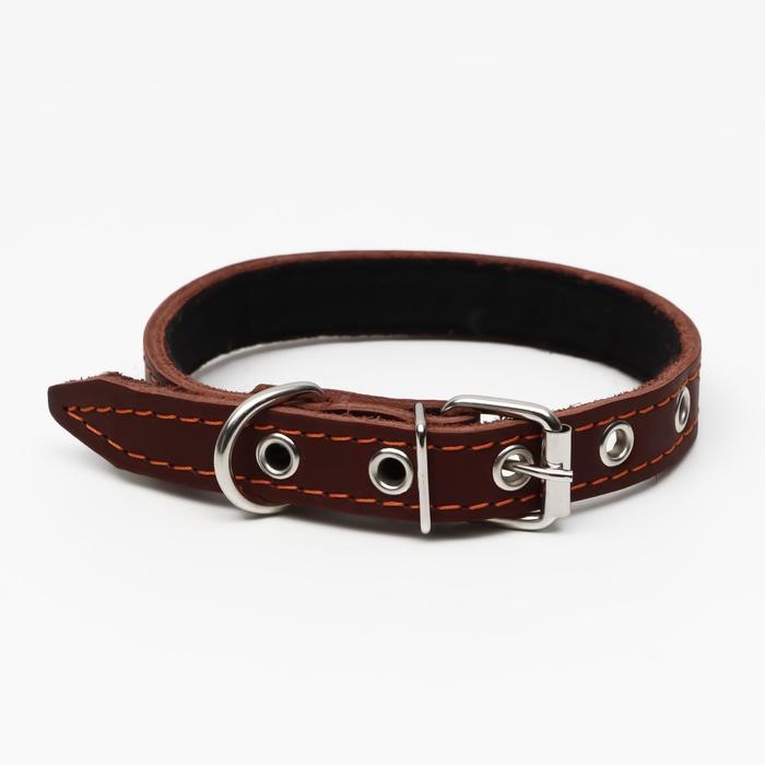 Ошейник кожаный двухслойный, 46 х 2 см, ОШ 25-35 см, коричневый