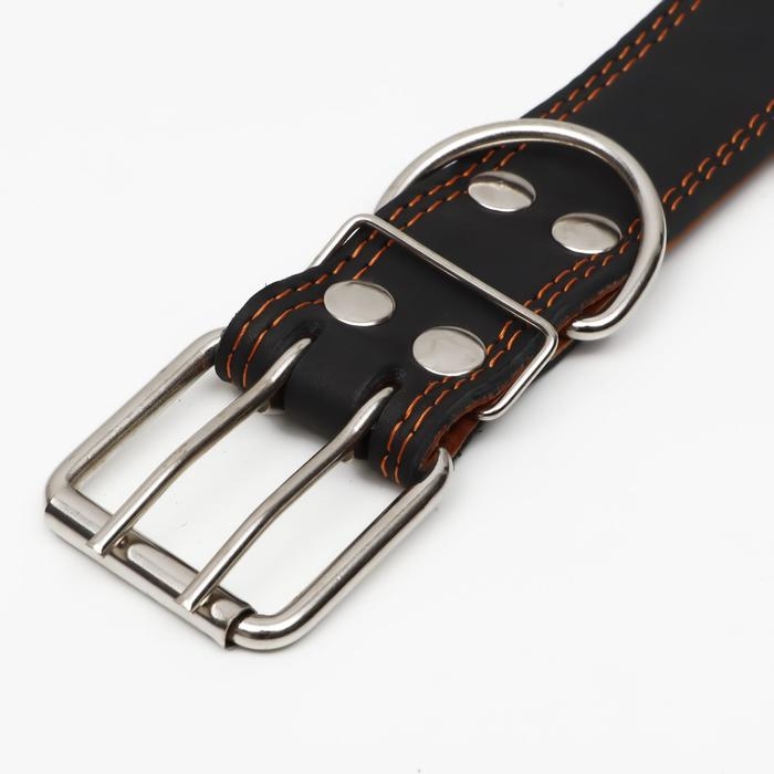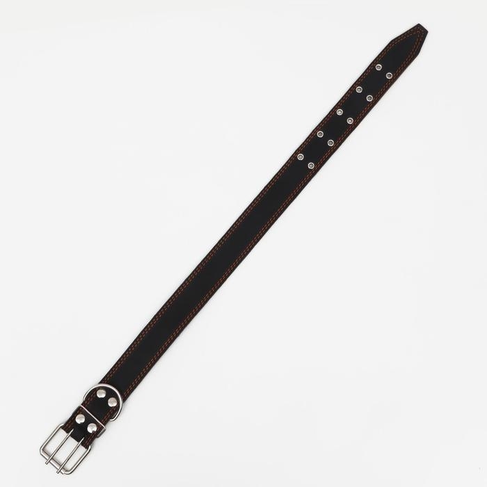 Ошейник кожаный двухслойный, 85 х 4.5 см, ОШ 50-70 см, чёрный