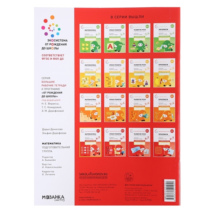 Рабочая тетрадь «Математика в детском саду», 6-7 лет, ФГОС