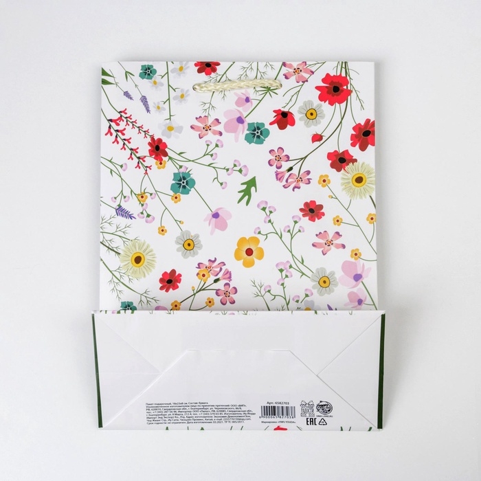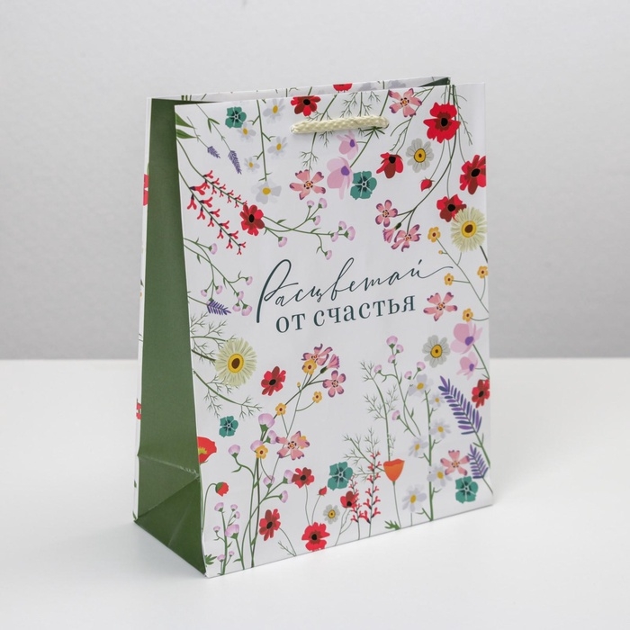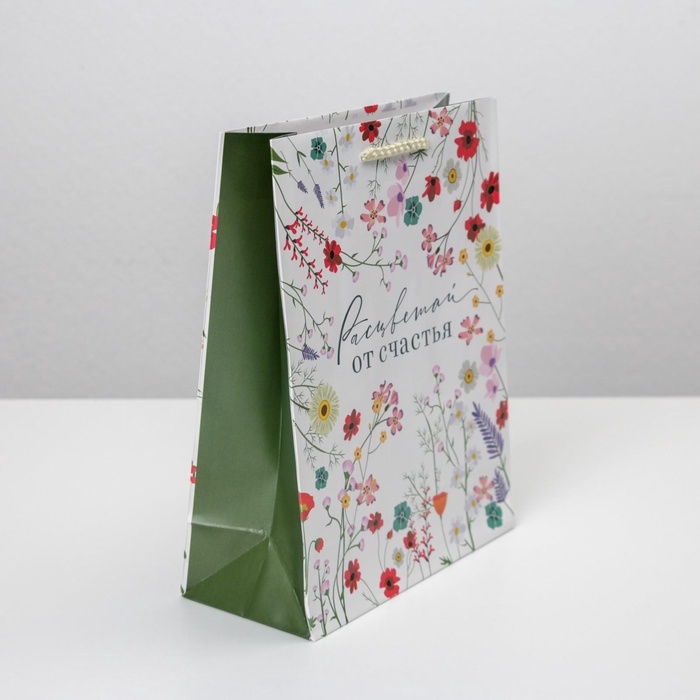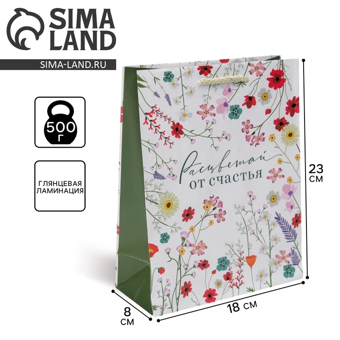 Пакет подарочный ламинированный, упаковка, «Расцветай от счастья», MS 18 х 23 х 8 см
