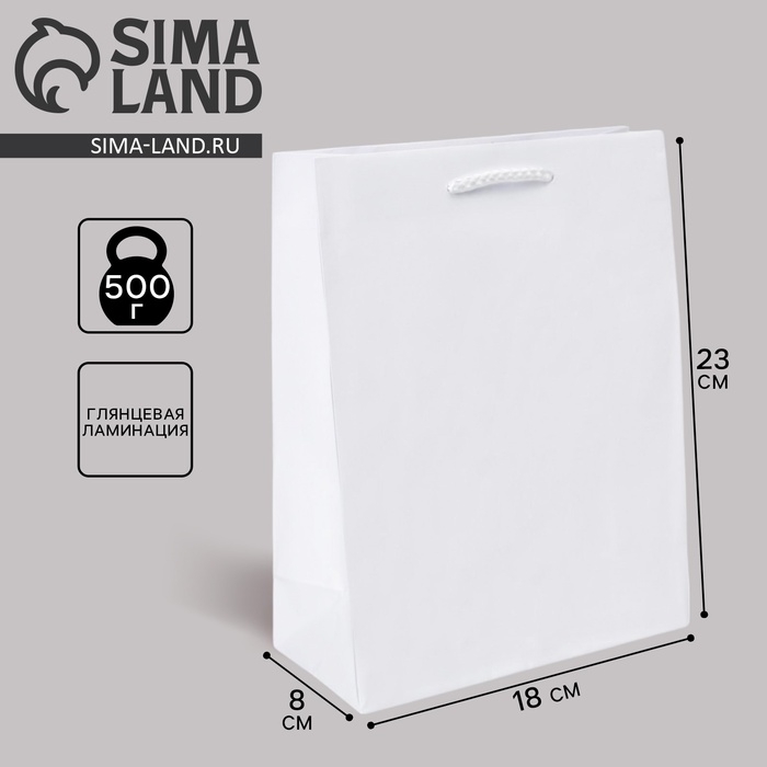 Пакет подарочный ламинированный, упаковка, «Белый», MS 18 х 23 х 8 см