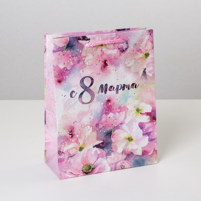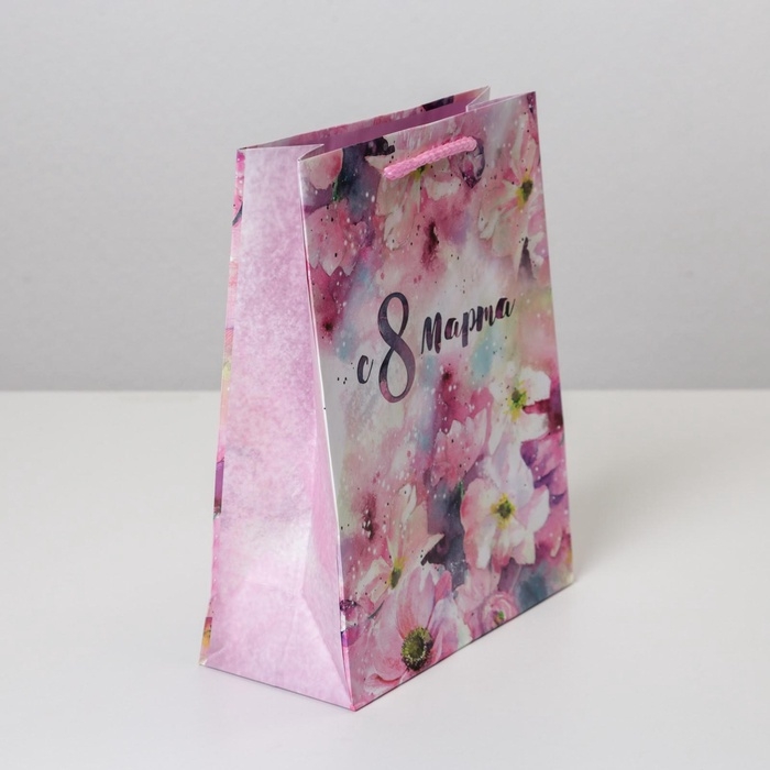 Пакет подарочный ламинированный вертикальный, упаковка, «С 8 марта», MS 18 х 23 х 8 см