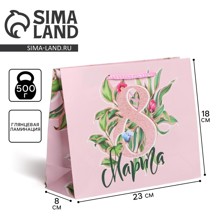 Пакет подарочный ламинированный горизонтальный, упаковка, «С праздником», MS 18 х 23 х 8 см