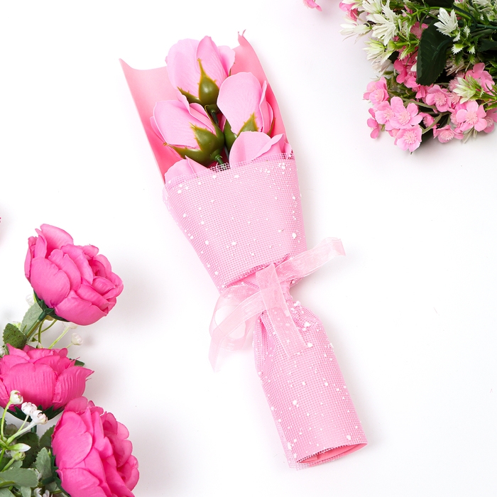 Благодаря точному повторению мелких деталей мыльные розы схожи с настоящими цветами. Композиция наполняет помещение тонким и ненавязчивым цветочным ароматом.