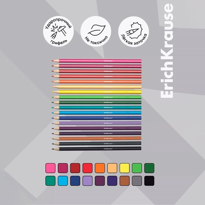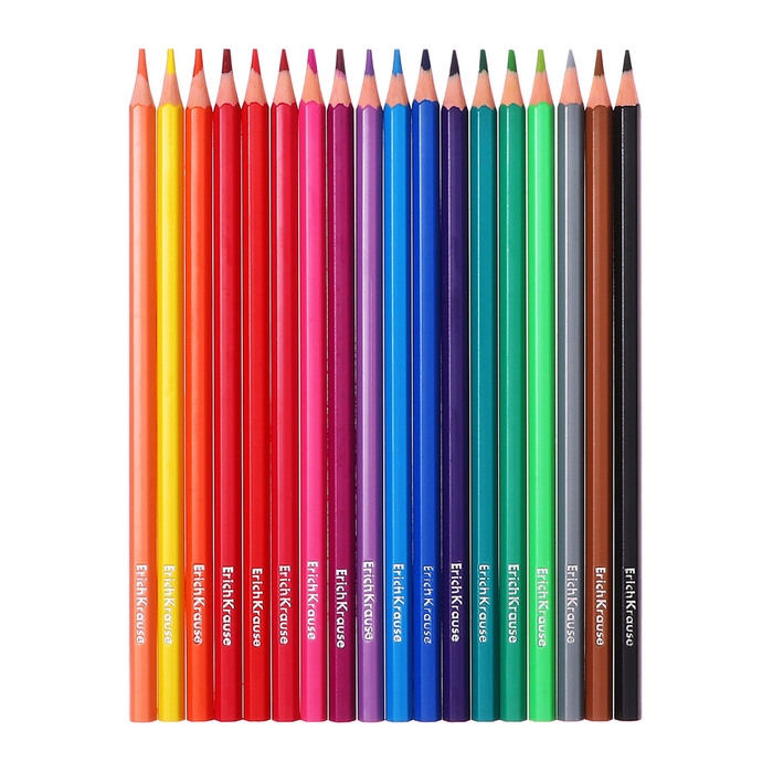 Карандаши 18 цветов ErichKrause, пластик, шестигранные, мягкий 2.6 мм грифель, картонная упаковка, легкая заточка, европодвес