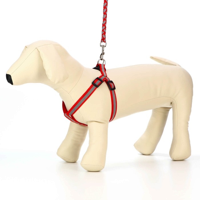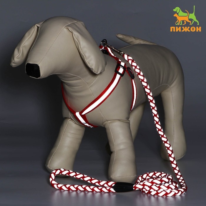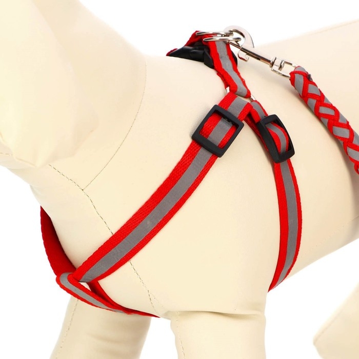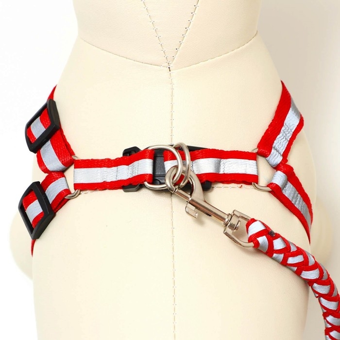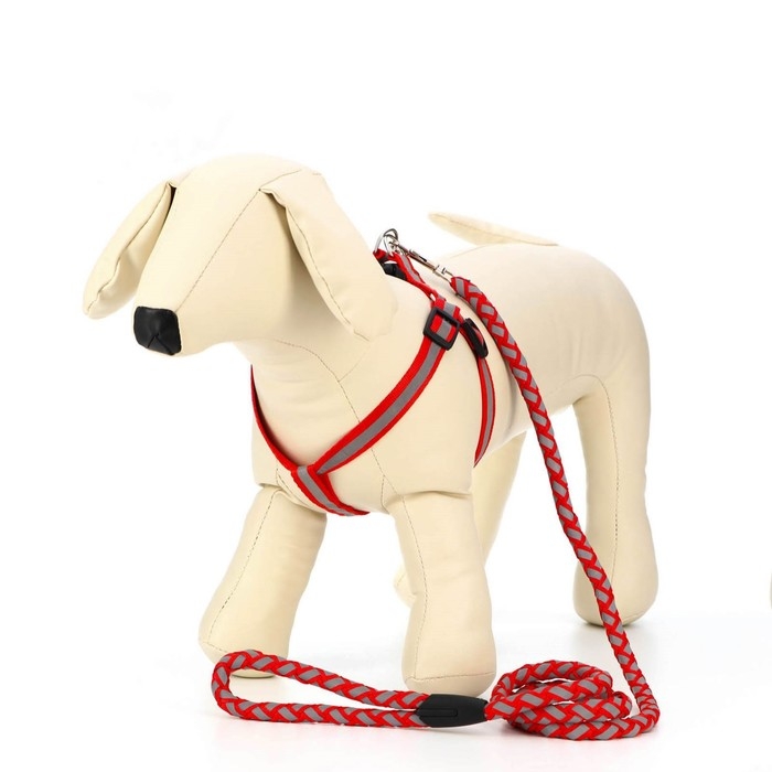 Комплект амуниции с мягкой шлейкой, L, поводок 120 х 1,5 см, ОШ 30-50 см, ОГ 36-56 см, красный 473