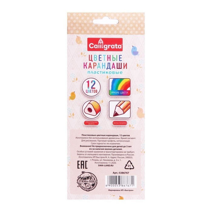 - Цветные карандаши Calligrata способствуют развитию творческого мышления, мелкой моторики рук, цветового восприятия, фантазии и воображения ребенка.