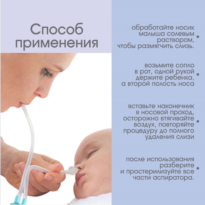 Аспиратор назальный с отводной трубкой «Совушка», цвет голубой