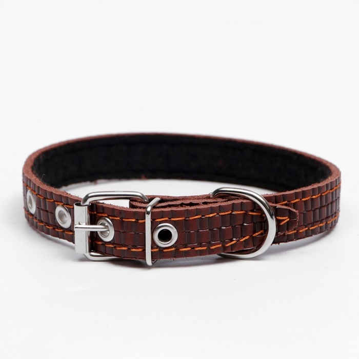 Ошейник кожаный с тиснением на синтепоне, 46 х 2 см, ОШ 25-35 см, коричневый