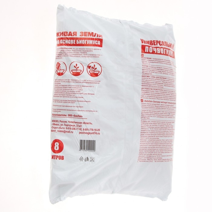 Наличие Биогумуса укрепляет иммунитет, снижает стрессовые состояния растений (особенно после пересадки), увеличивает приживаемость, повышает устойчивость к заболеваниям. Биогумус содержит стимуляторы роста в природной, естественной форме. Питательные вещества в Биогумусе не вымываются и действуют продолжительное время.Назначение: Универсальный, нейтральный почвогрунт рекомендованный для выращивания комнатных растений, рассады, мульчирования почвы на садовых участках, при посадке газонов и т.д.Состав: Полностью готовый к применению почвогрунт полученный переработкой навоза крупного рогатого скота и торфа красными Калифорнийскими червями. Основные элементы питания, не менее: азота-0,5%, фосфора - 0,4%, калия-0,5%. РН нейтрален. Способ применения: На дно емкости положите дренаж и заполните почвогрунтом. Разрыхлите и выровняйте поверхность. Произведите посадку. Полейте.