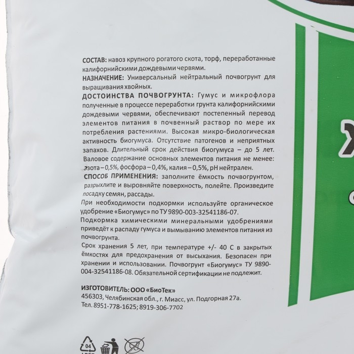 Почвогрунт на основе Биогумуса Универсальный, Зеленый город, 5 л