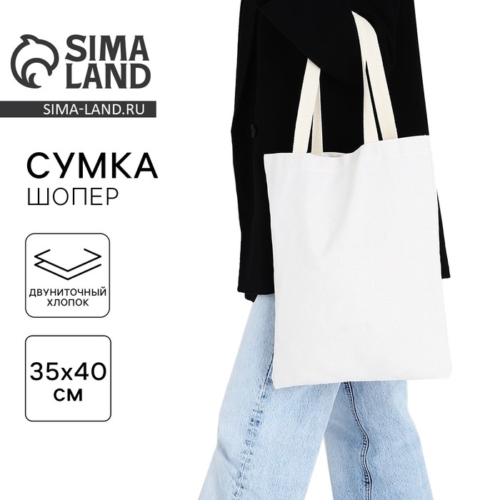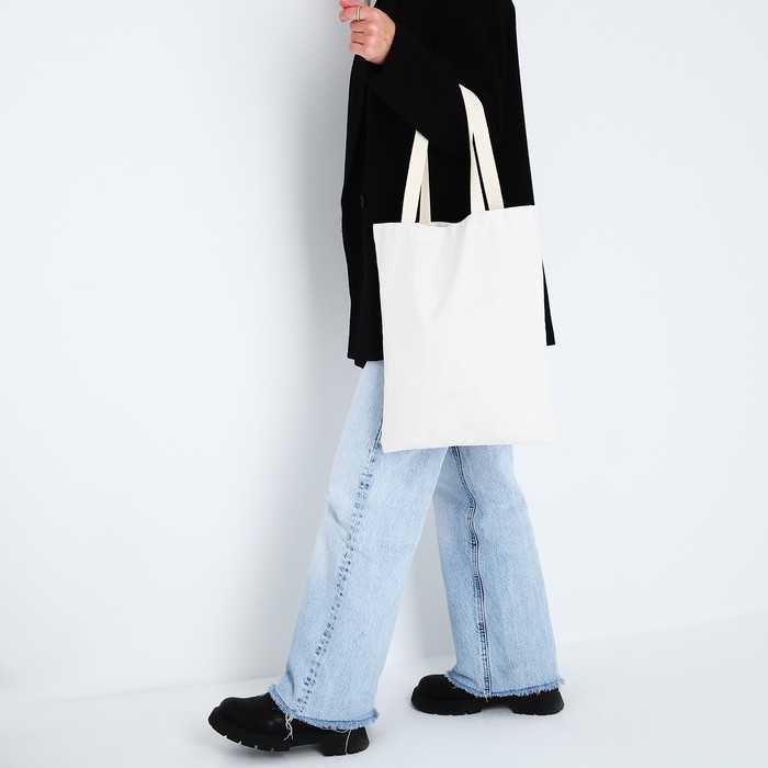 Шопер однотонный, 35 х 0.5 х 40 см, двунитка, без подклада, бежевый