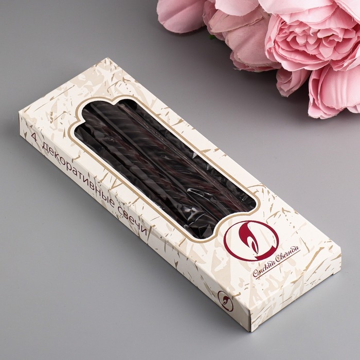 Набор свечей витых, 2,3х 24,5 см, 5 ч, 50 г, 4 штуки, черный