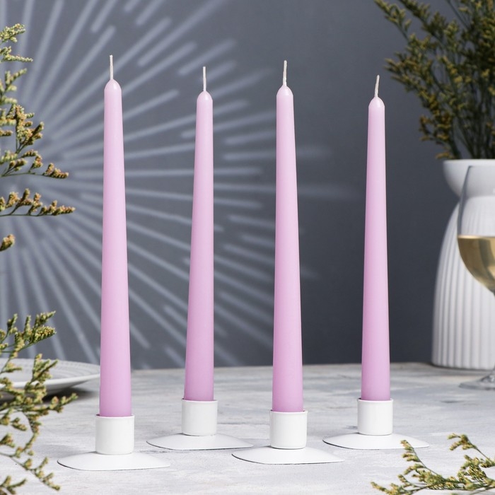 Набор свечей античных, 2,3х 24,5 см, 5 ч, 55 г, 4 штуки, сиреневая
