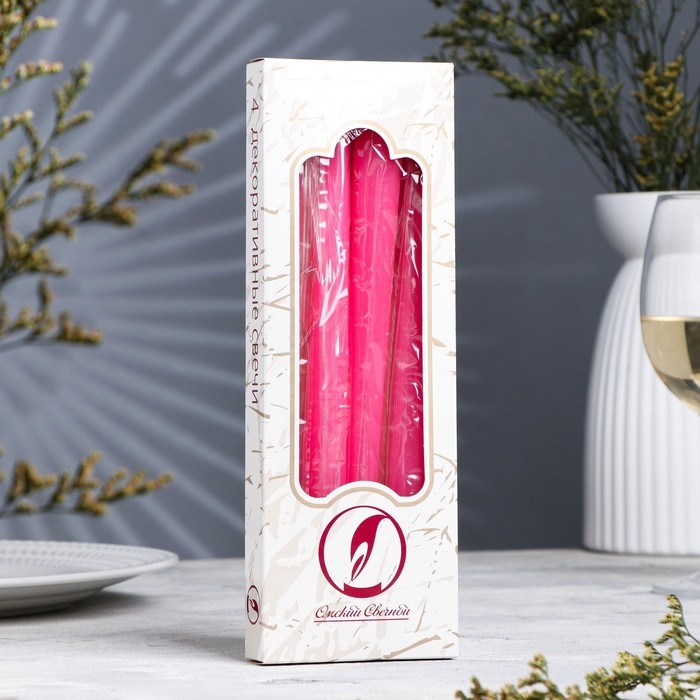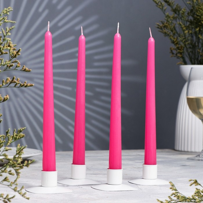 Набор свечей античных, 2,3х 24,5 см, 5 ч, 55 г, 4 штуки, темно-розовая