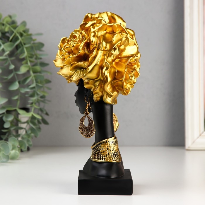 Сувенир полистоун "Африканка с золотыми розами в волосах, с ожерельем" чёрный 24х10х11 см