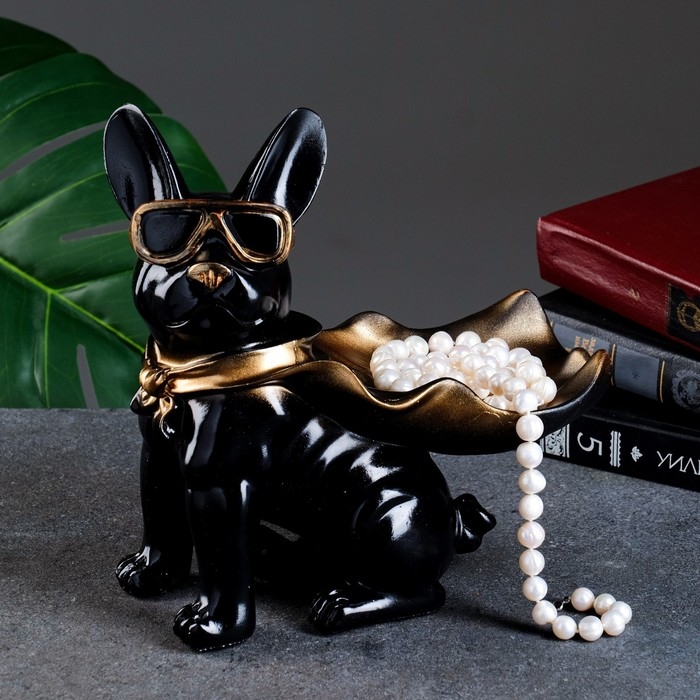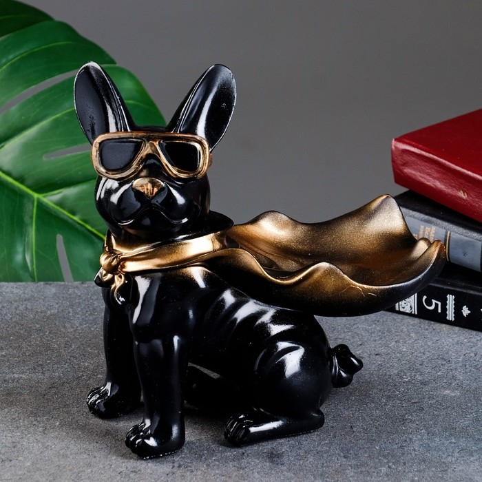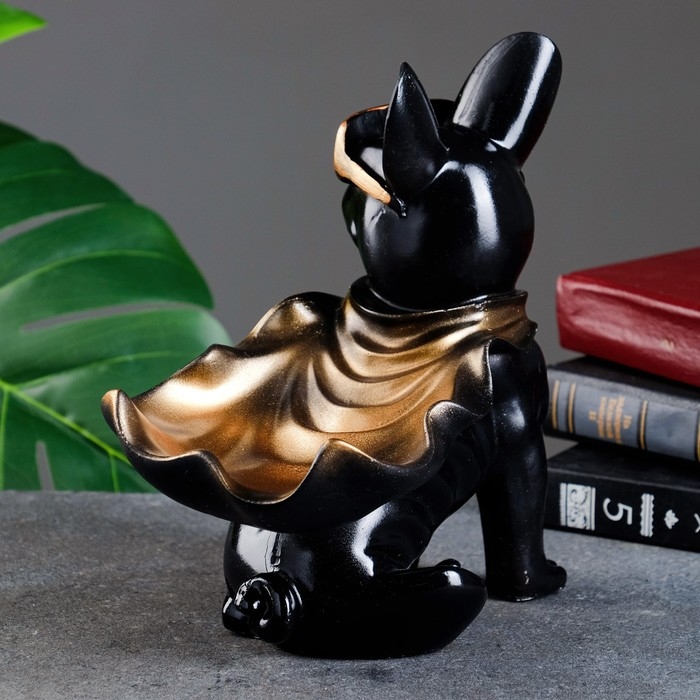 Подставка конфетница "Бульдог в плаще" черная, 23х20х13см