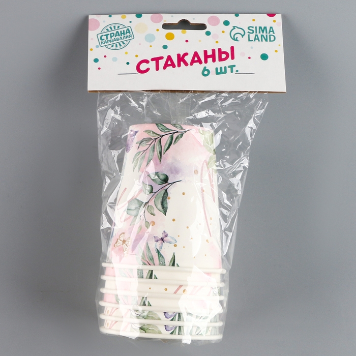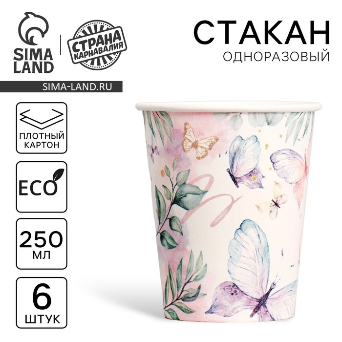Стакан одноразовый бумажный Butterfly, набор 6 шт, 250 мл