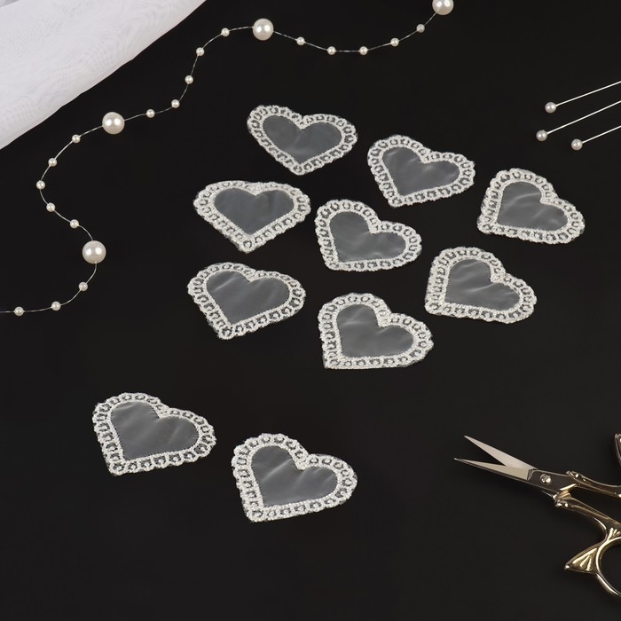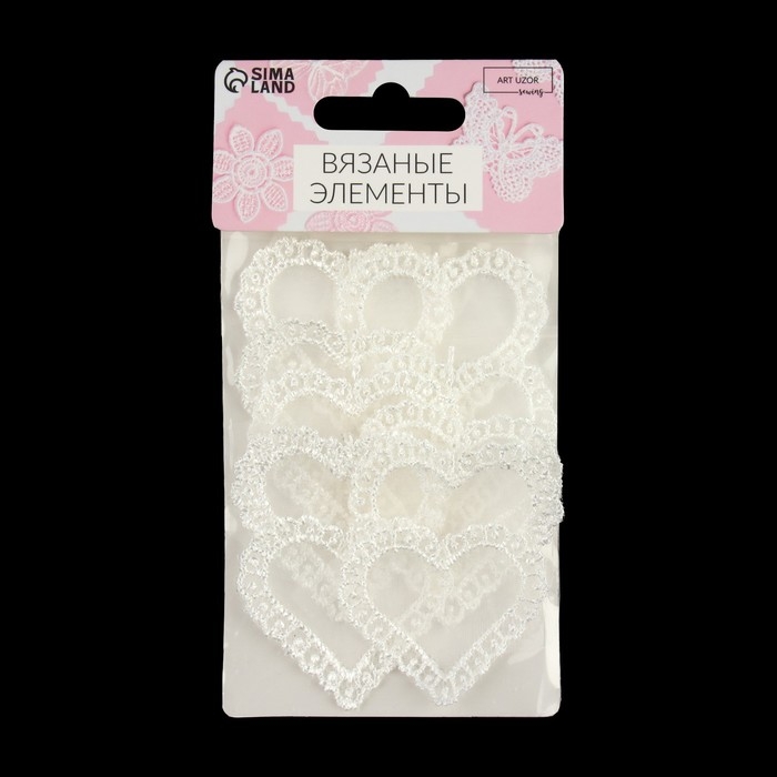 Вязаные элементы «Сердце», 4 × 4,5 см, 10 шт, цвет белый
