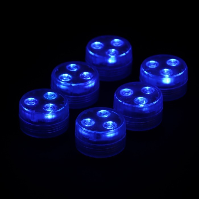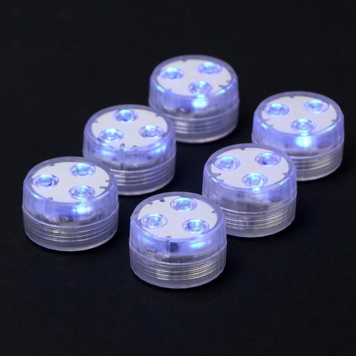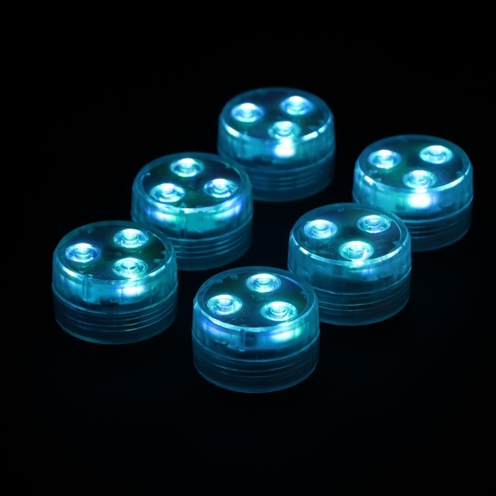 Светильник водонепроницаемый мини, 3 x 1.9 см, 6 шт, от CR2032 (в компл.), пульт, RGB, IP68