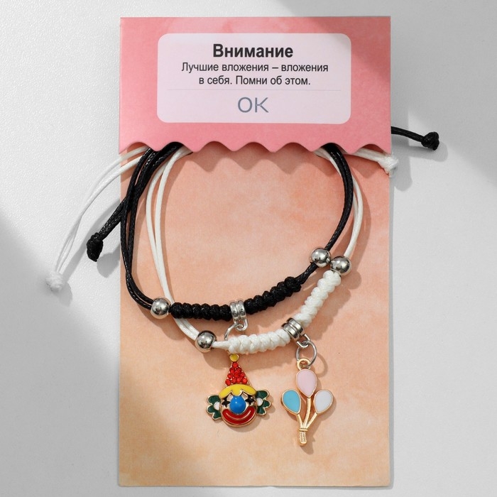 Браслеты «Неразлучники» ассоль, клоун и шары, цвет бело-красный