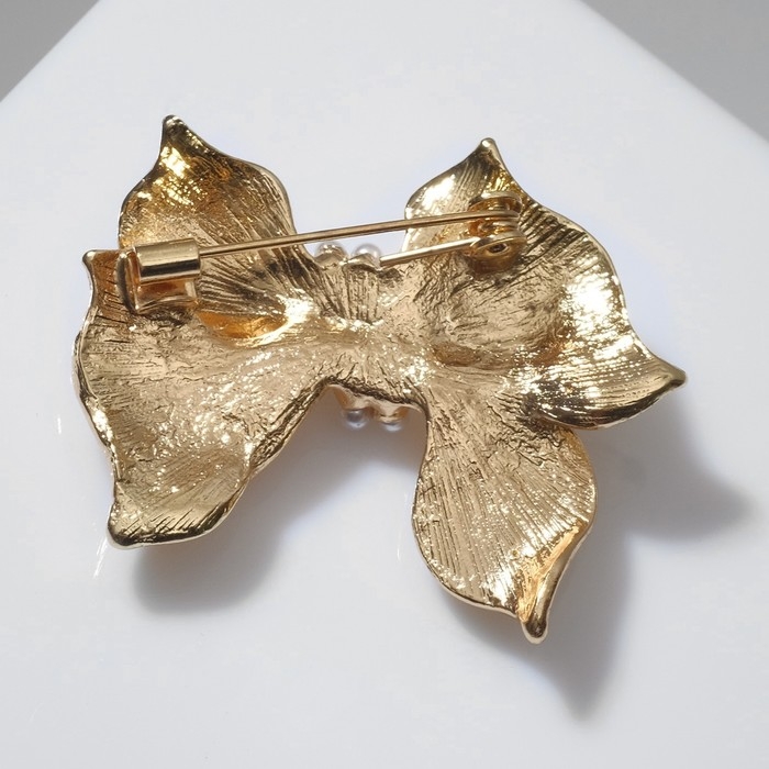Брошь «Бант» с жемчужной лентой, цвет белый в золоте