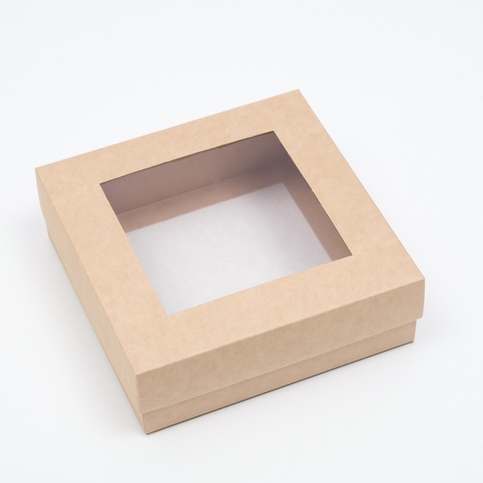 Коробка складная, крышка-дно,с окном, крафт, 15 х 15 х 5 см