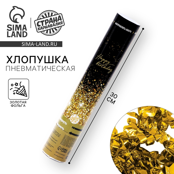 Хлопушка пневматическая Happy birthday 30 см