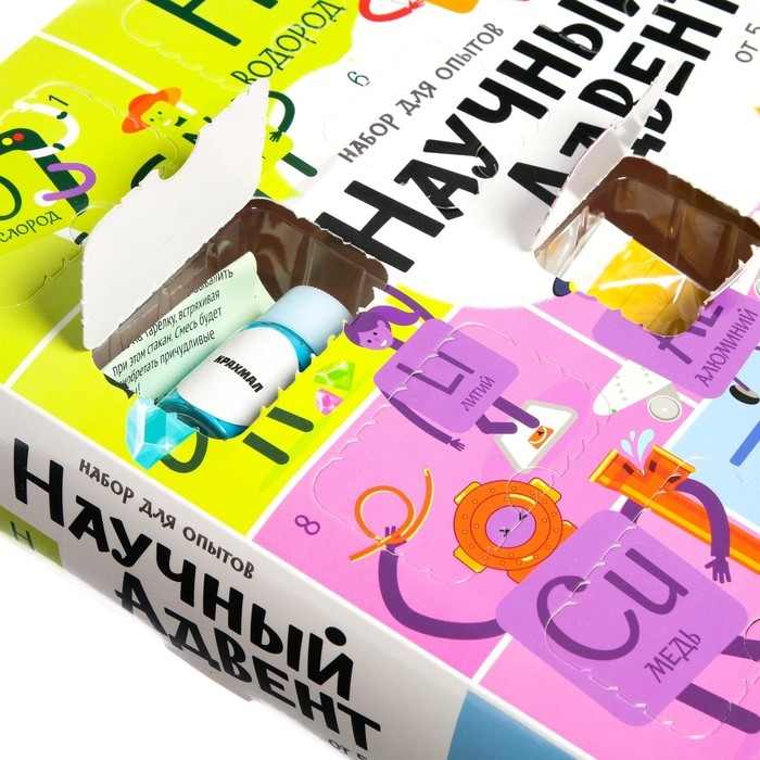 Набор для опытов «Научный адвент-календарь» скрасит дни в ожидании Нового года и поможет весело и с пользой провести время. Набор представляет собой коробку с 13 окошками. Новый день — это новое окошко, в котором находятся материалы для проведения опытов.