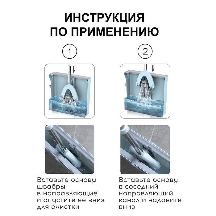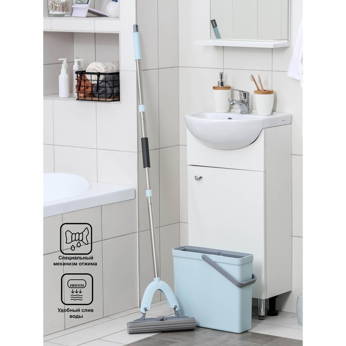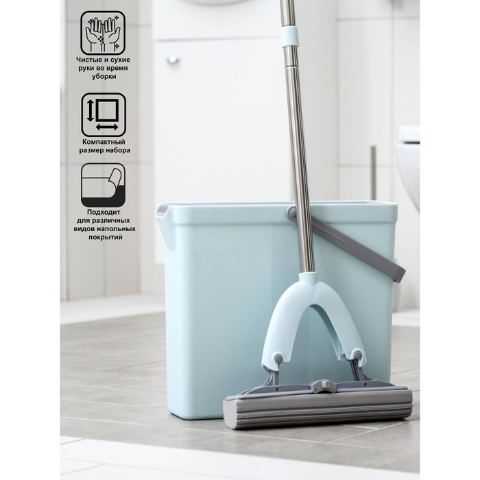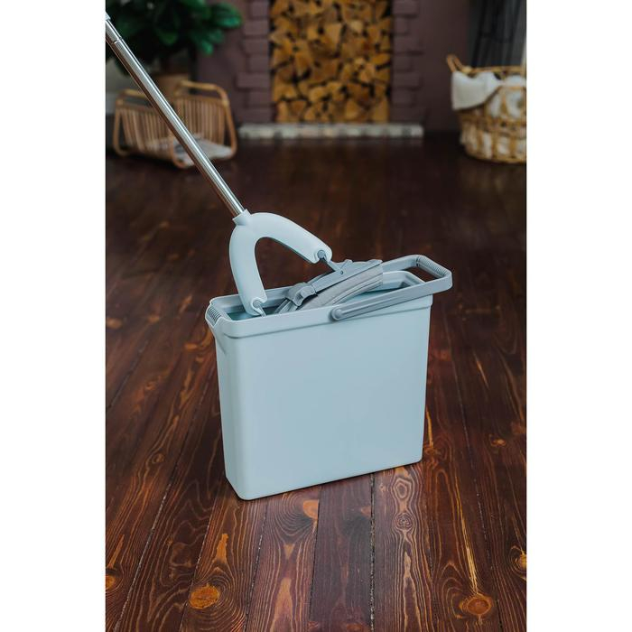 Швабра с отжимом и ведро Доляна: швабра плоская, ведро с двумя отсеками, 8 л, дополнительная насадка